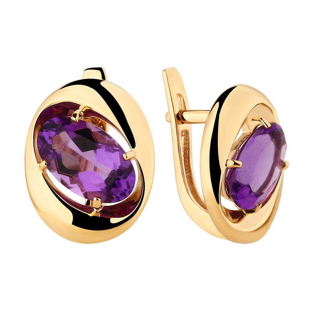Серьги золотые 20310515 Аметист гидротермальный