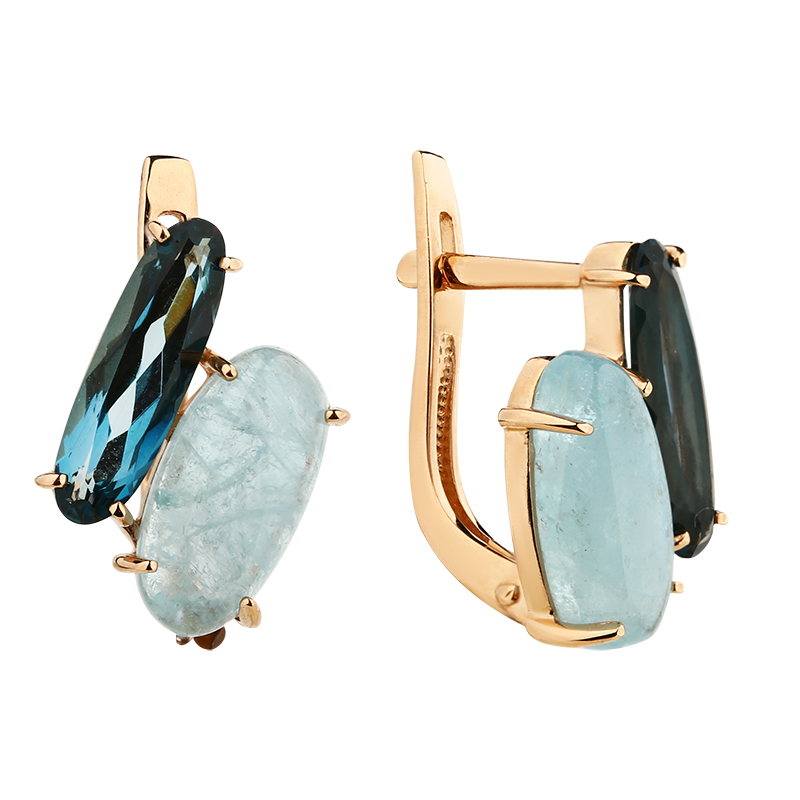 Серьги золотые 2690538 Аквамарин Топаз